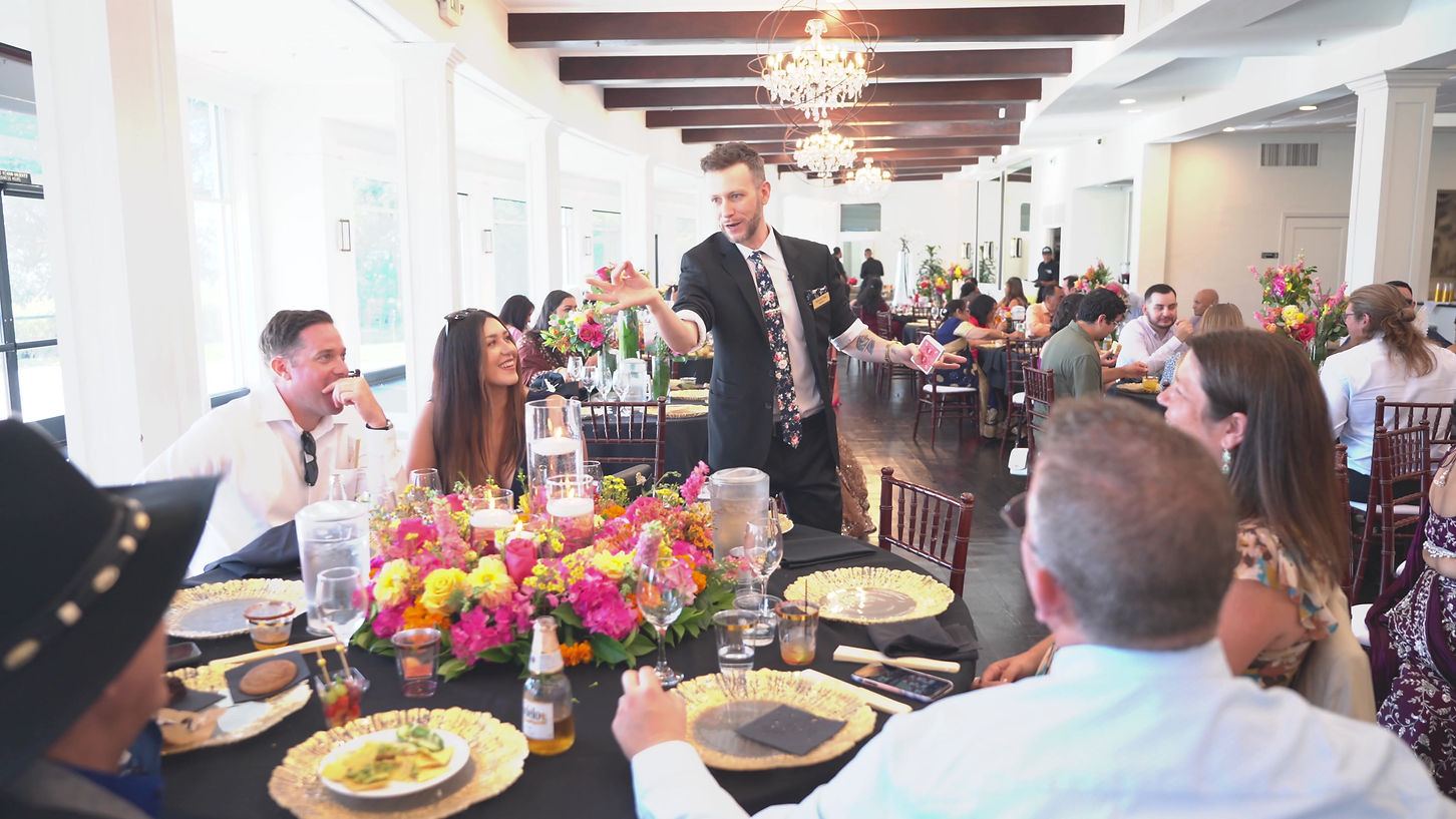 Spencer's magic creates unforgettable moments that helps break the ice and spark conversations by surprising guests with interactive mind reading and close-up magic tricks. Whether you're planning a corporate event, holiday party, wedding reception, or a milestone birthday, Spencer's engaging style ensures that every guest feels like part of the magic. Sure to create a buzz of excitement that will have everyone saying "Have you seen the magician yet?!"